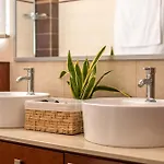 ملحقات الحمام في بعض الغرف تتضمن حوض الاستحمام والمرحاض المنفصل.